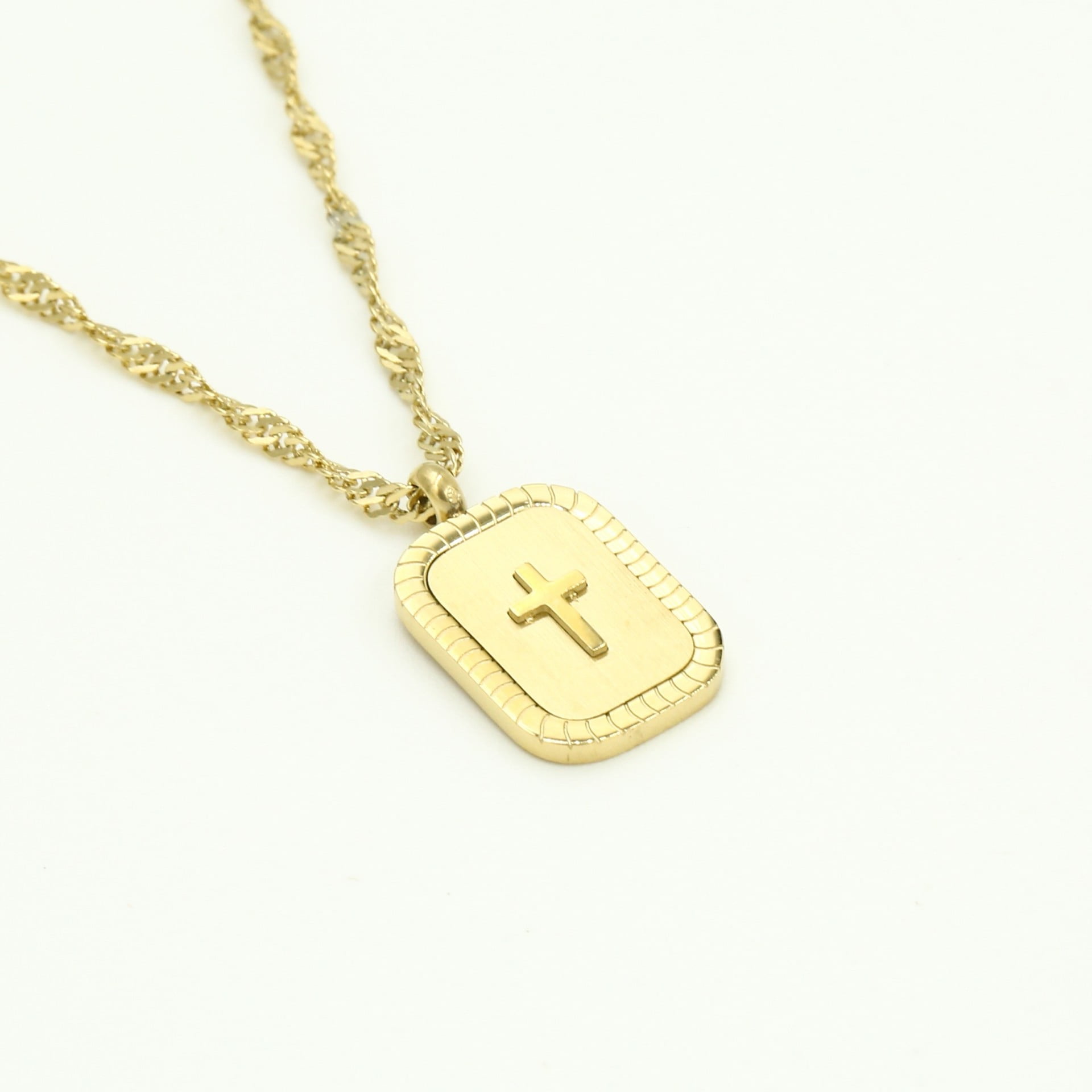 Mooie ketting op hals hoogte.